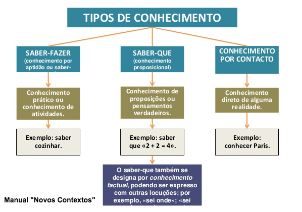 Vamos aqui abordar apenas o conhecimento proposicional. Queremos saber o que é necessário para que um indivíduo S saiba que p, sendo p uma proposição qualquer — como a de que a Serra da Estrela fica em Portugal. Daqui em diante, quando falarmos de conhecimento, estaremos sempre a referir-nos ao conhecimento proposicional.